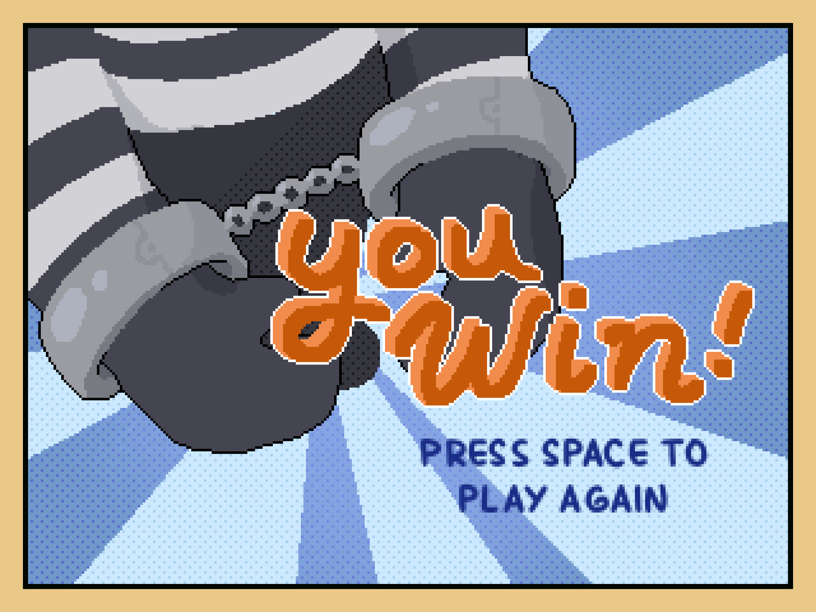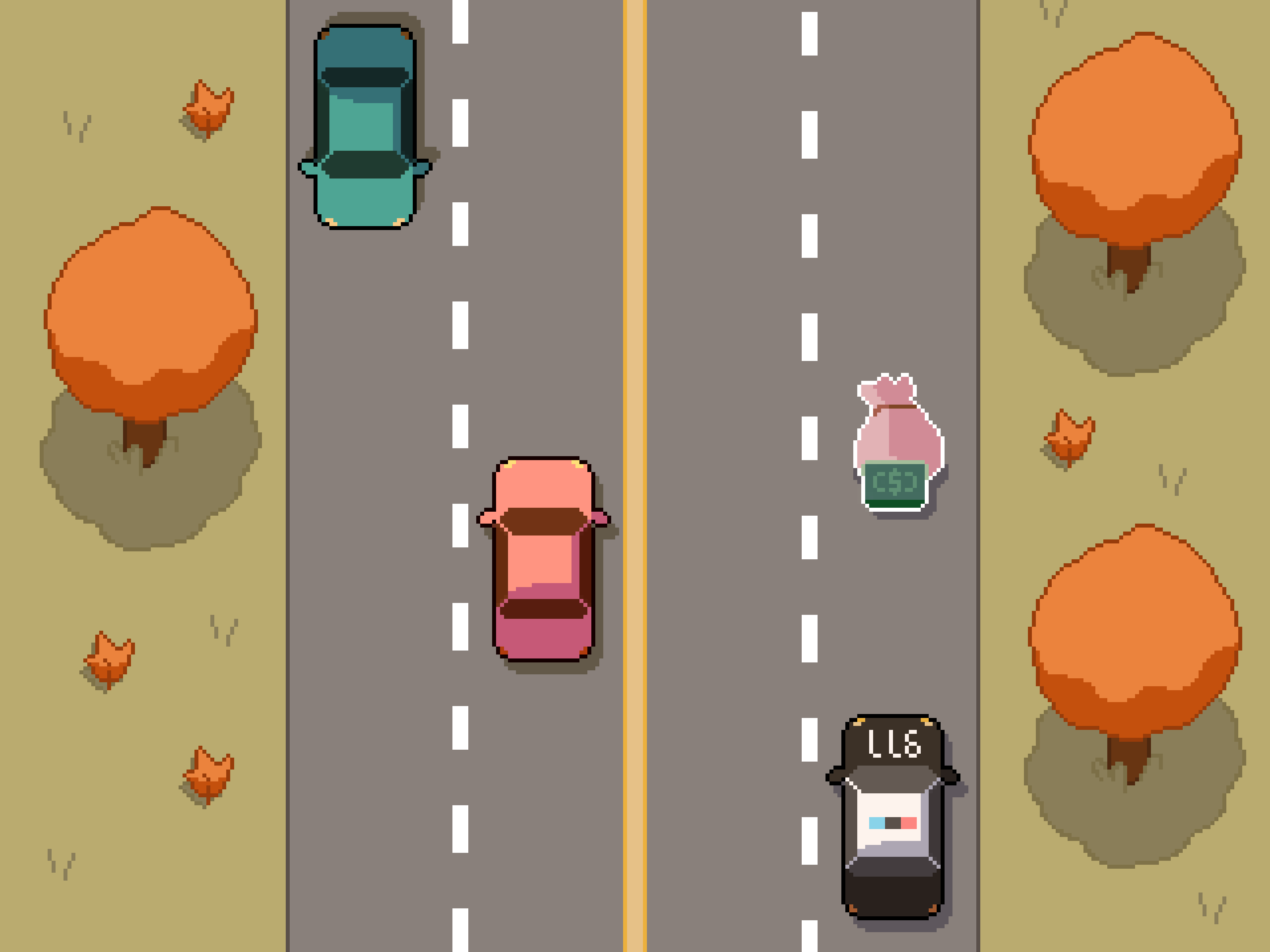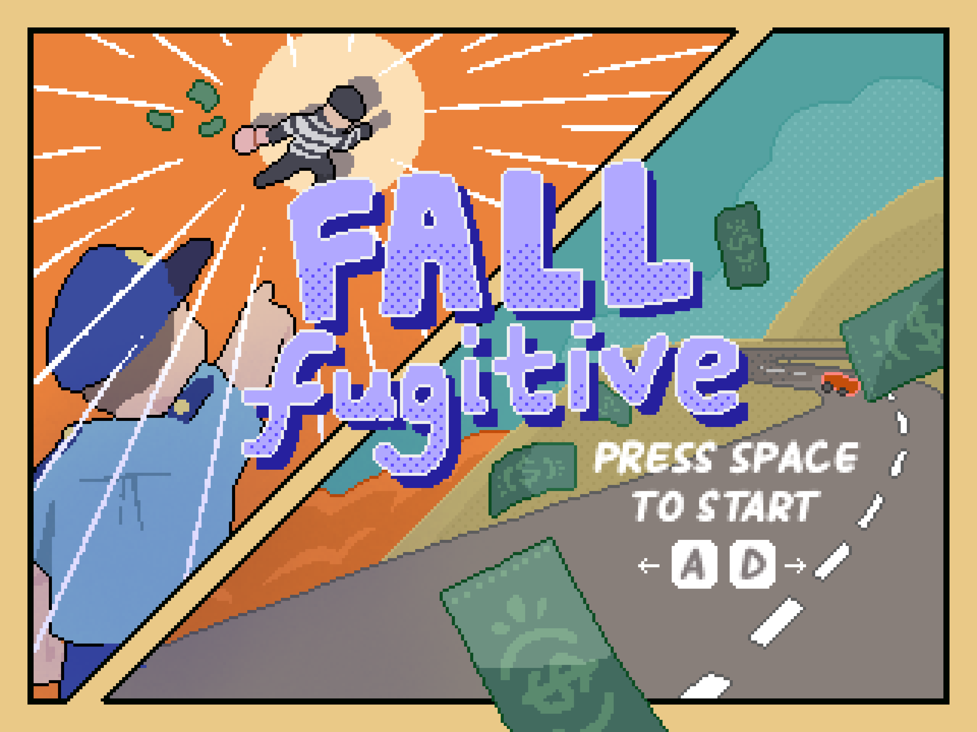 Fall Fugitive is a top-down car-chasing game where the player is inside a police car in a high-speed chase after some bank robbers. The police car is moving through all 4 lanes and must dodge the other cars while chasing after the getaway vehicle. Along the way, they must collect bags of stolen money that were dropped along the way. There is no time limit or destination - the player wins if they are able to collect 10 bags of money without crashing into any cars (which would result in an immediate loss). There is no penalty for missing a bag of money.