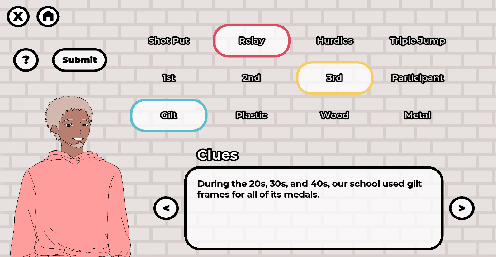 The game was created over 2 years during my time as co-president of the Bloor CI Girls Game Development Club (GGDC). My friend and I founded this club as a way to encourage more girls to learn to code, and provide a comfortable and inclusive environment to do so. We planned the production of the game in such a way that aside from the dialogue scenes, the gameplay consisted of mini-games which was each its own self-contained project. This way, we could come up with puzzle games with varying levels of difficulty in implementation, and use these projects to teach our members to code.